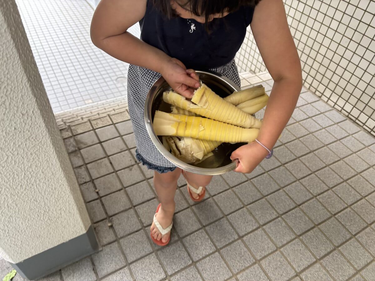 茹で上がったタケノコは、近所のお友だちにもおすそ分け。